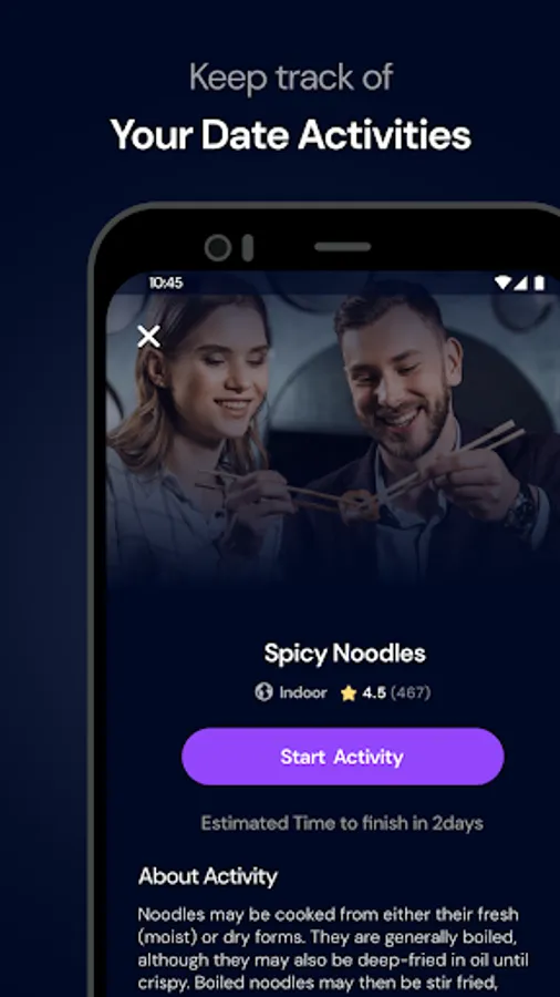 Sizzle up your dating life, find various dating activities to do with your partner, plan and track them on us!