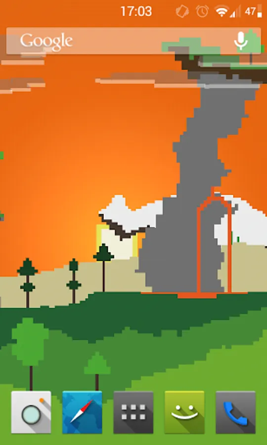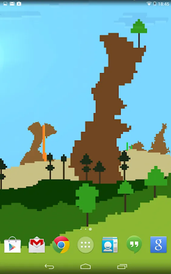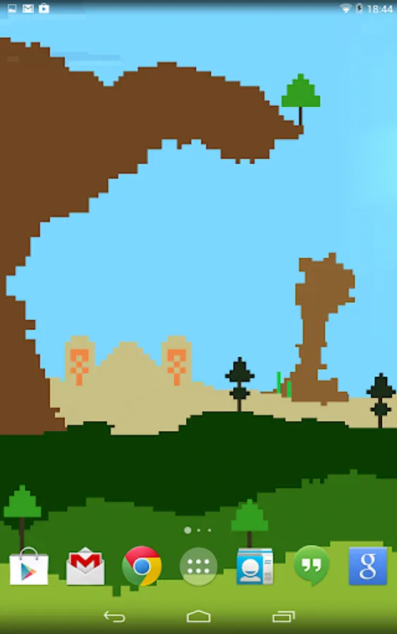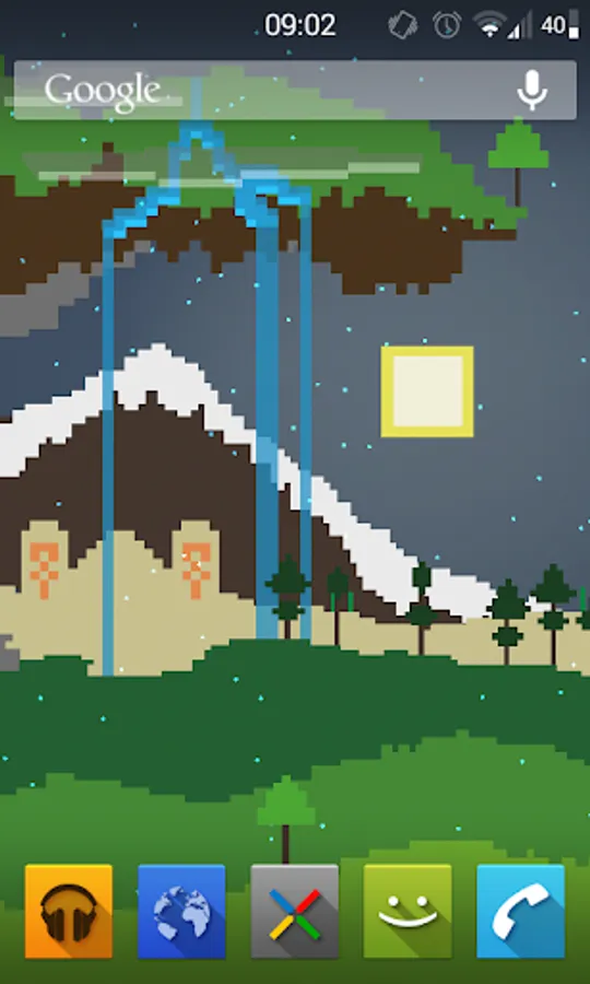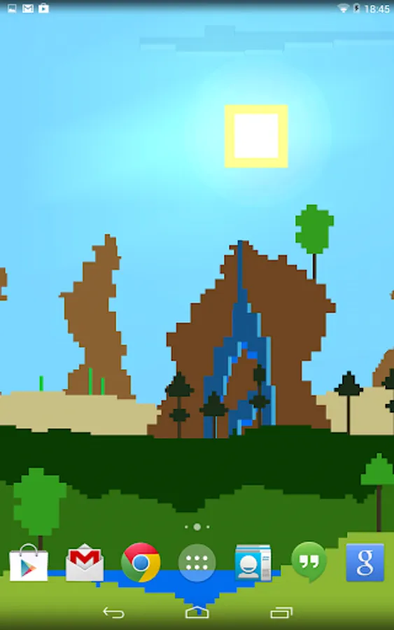 Beautiful moving clouds, sun and moon and animated water. The bright landscape will also turn into night during the night and then back into day in the morning. When the landscape goes dark the moon comes out and dazzling pixel stars turn in the night sky. There are also possible random weather changes occurring every couple of hours with snow and rain.