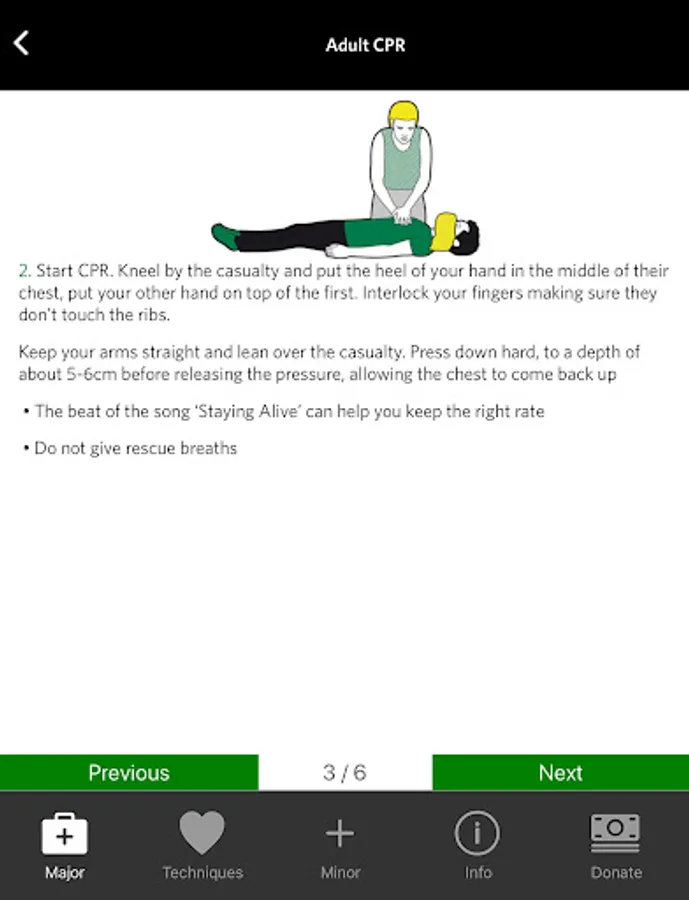 This app includes the latest first aid advice and protocols for dealing with emergency situations. It is simple to follow with illustrated guides and voiced instructions.