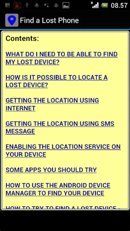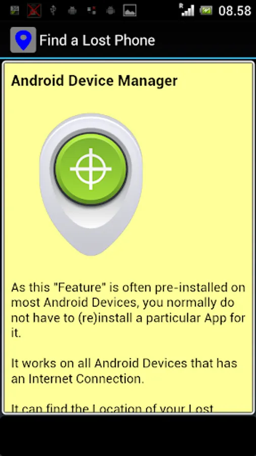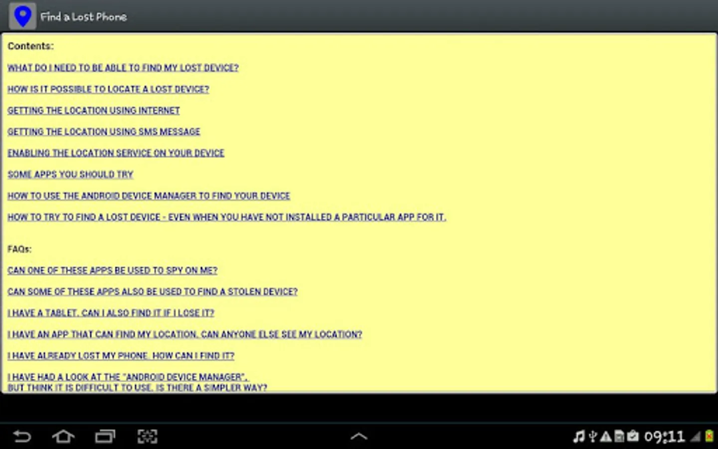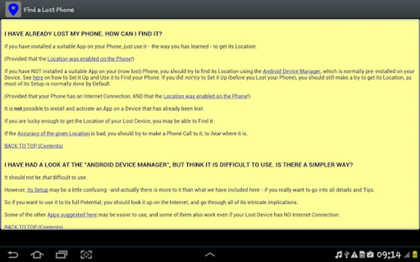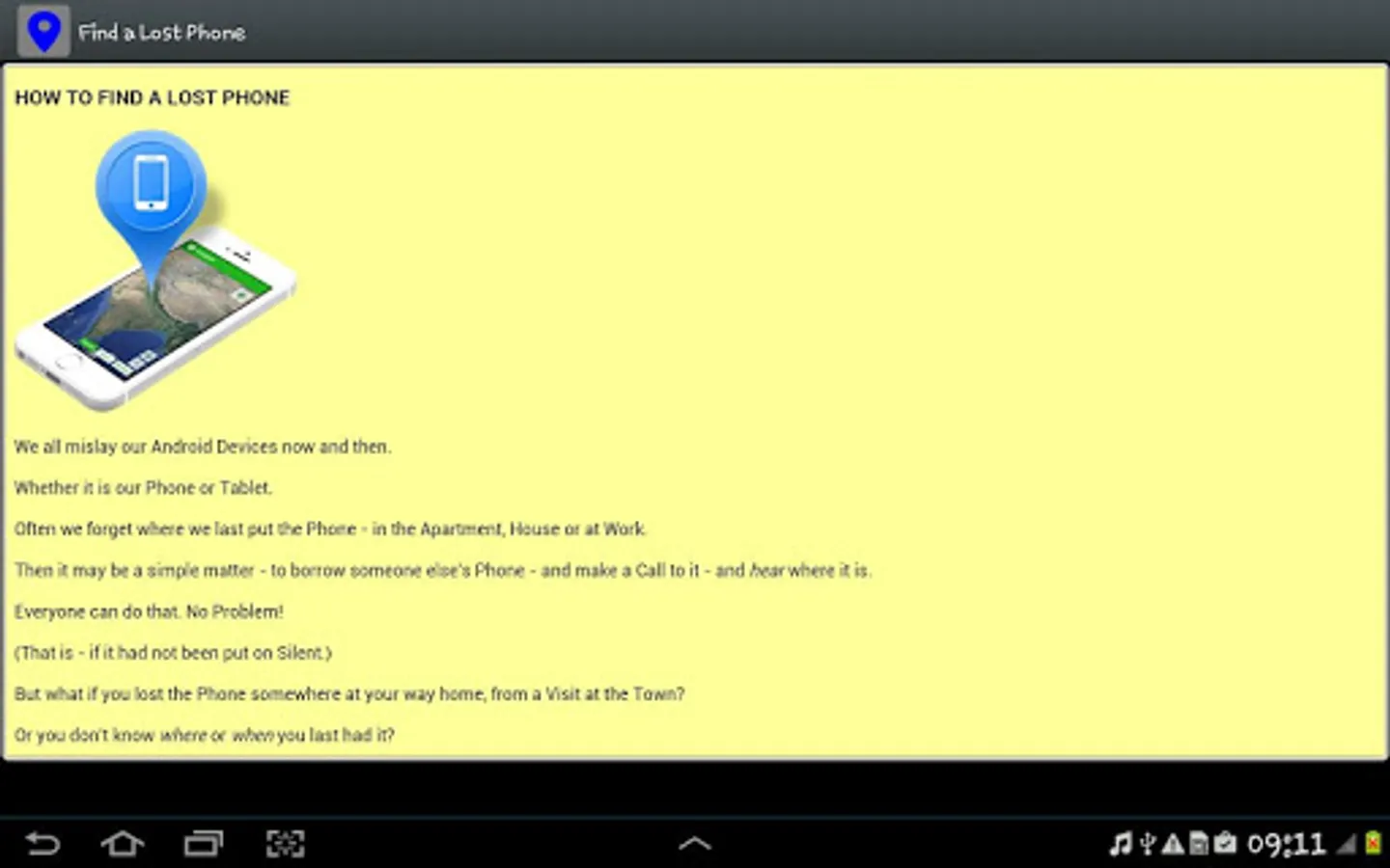 This App even shows you how you can Try to Find your Lost Phone - even if you haven't previously installed a "Find My Phone" App!
