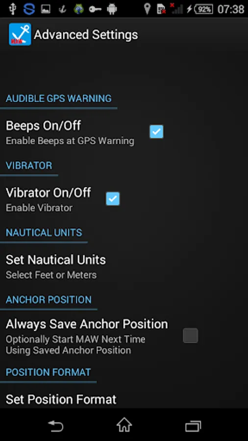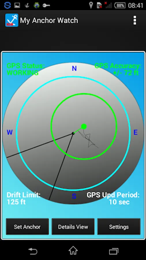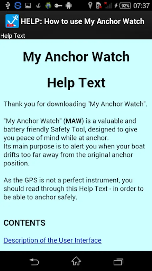 After the Anchor has been set, you can close the User Interface screen, letting MAW continue running in the background - while you use your Android for other Purposes.