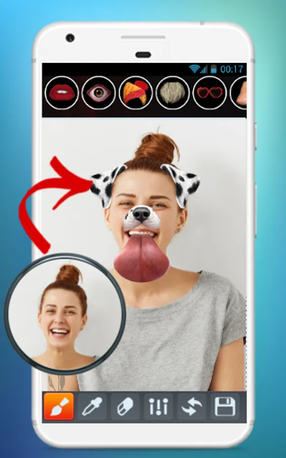 with best auto-filters and Snap Filters. You can add amazing photo filters & stickers for your selfie and try to get more likes and more followers by using Funny Face Maker - Photo Editor and creative cool smiley Snap filters and stickers to your photo.