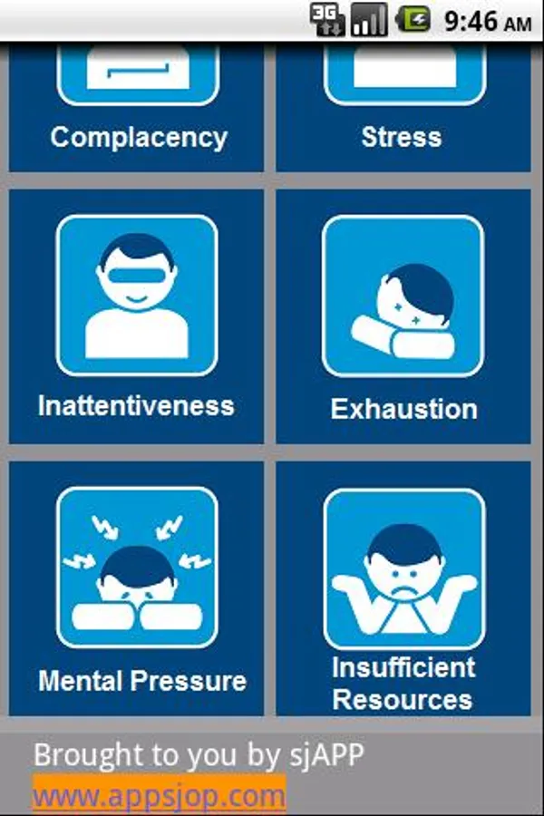 All 12 human factors are described in a separate screen, together with an applicable cartoon.