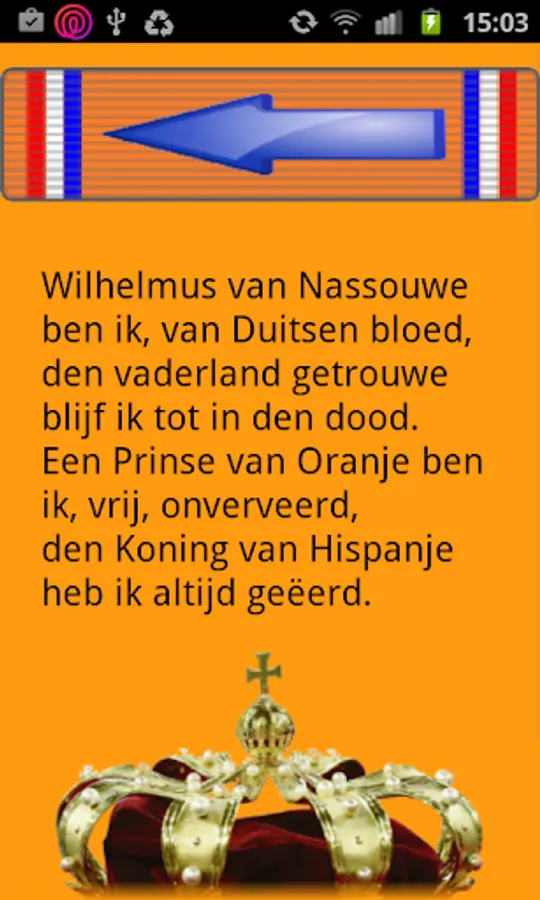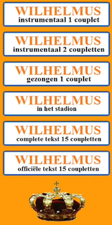 This app contains the official Dutch national anthem, the Wilhelmus, in various designs.