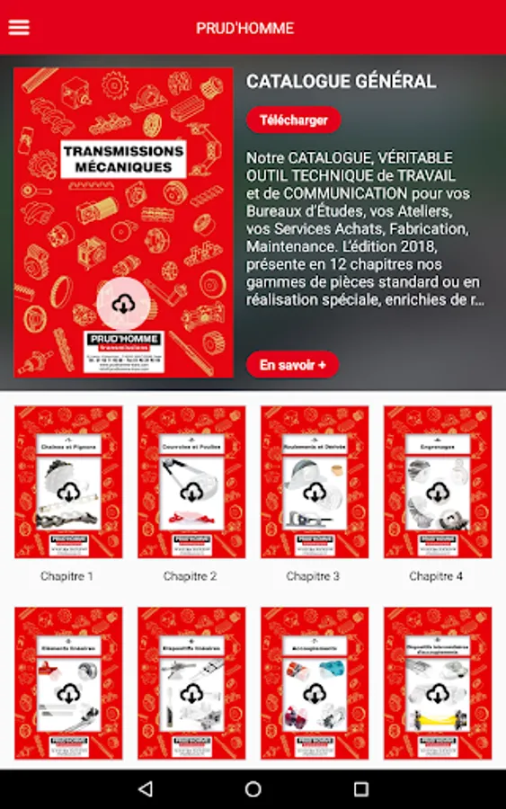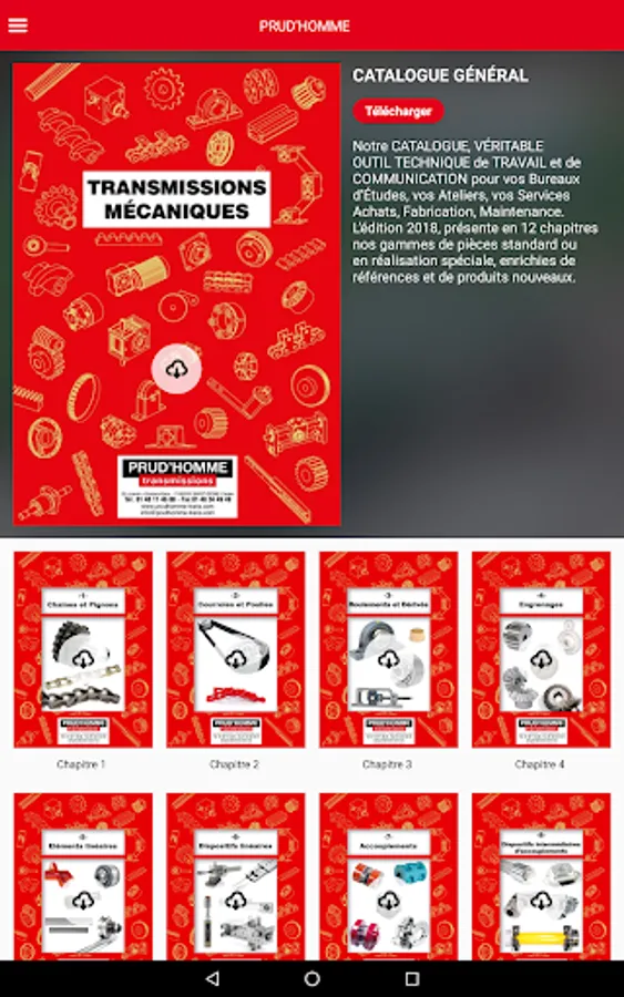 Prud'homme Transmissions famous catalog, the bible of mechanical transmission since 1855, is now available on Android with this application.