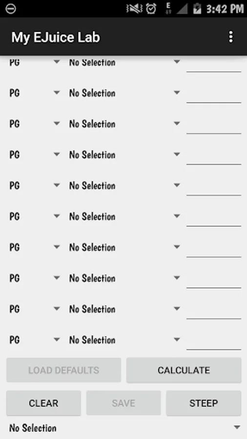 Full stock control - let the app take care of the stock of your PG/VG/Nic/Concentrates and know before you start mixing if you have enough to make your requirements