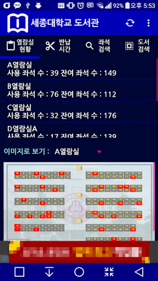 1. 열람실별 사용/잔여 좌석 현황 조회