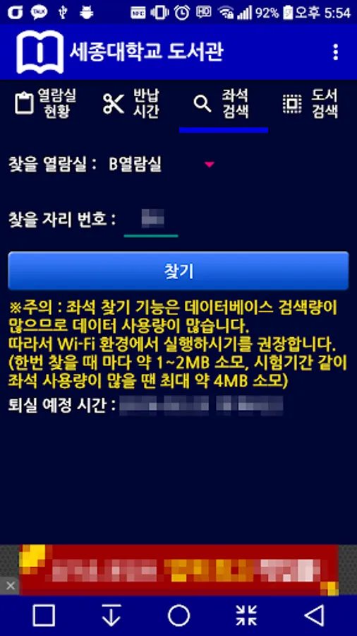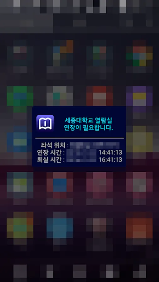 세종대 도서관 어플리케이션을 사용한다면 더이상 좌석미반납으로 인한 이용제한은 당하지 않을 것입니다.