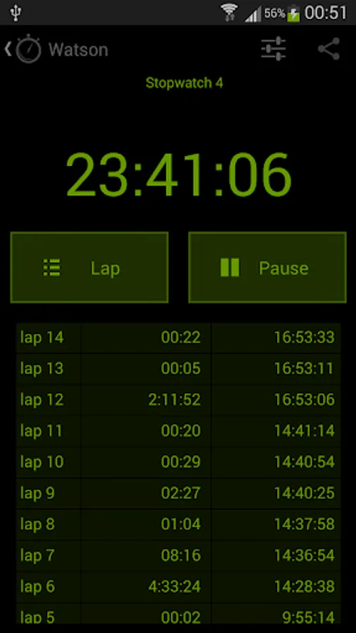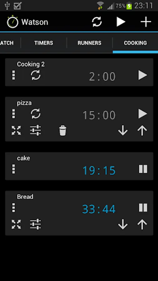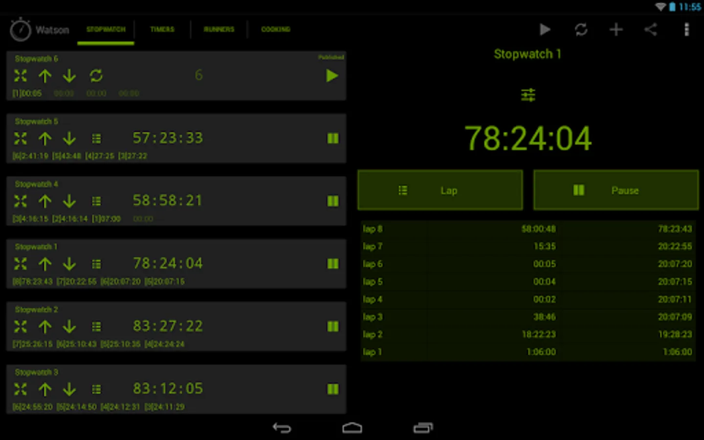 Watson is a free multiple stopwatch and timer app using an intuitive multi page layout. Each page can represent a different category, e.g. cooking, exercise, work, games, use it as a kitchen timer, a sports stopwatch for timing multiple contestants in a race, or measuring time spent on client work. You can easily name your pages and timers, so its easy to identify what being timed.