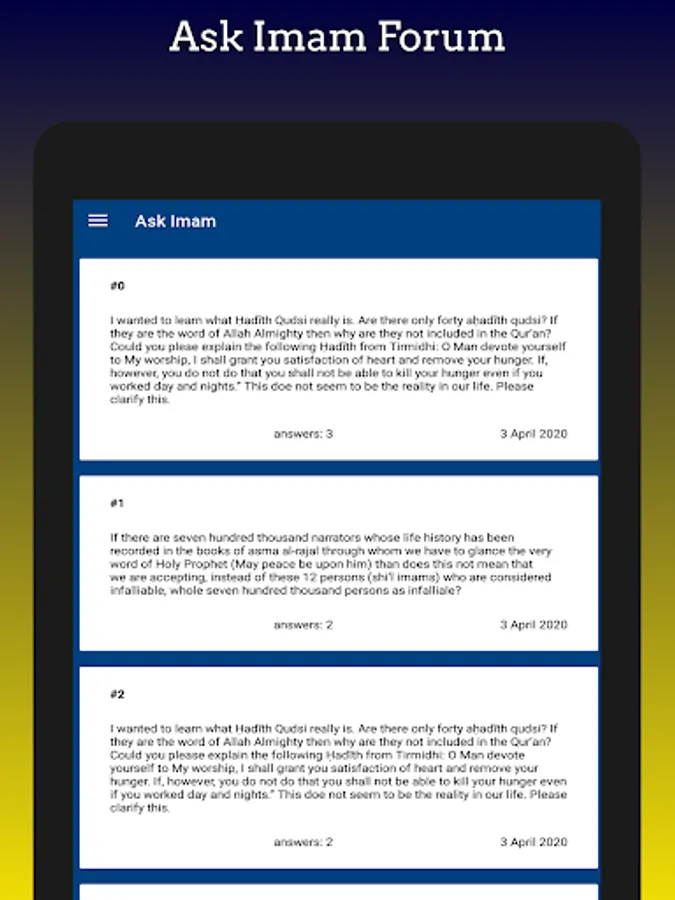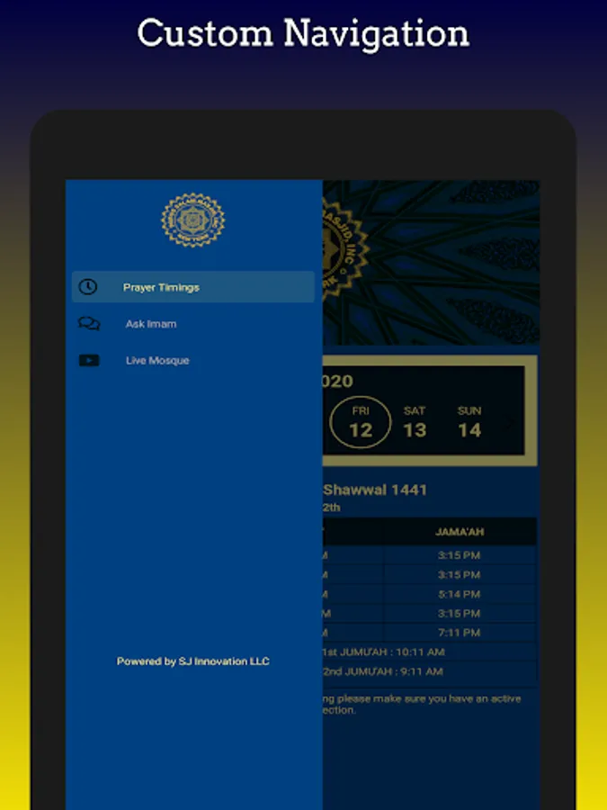 Specifically designed visitors who are not able to come to the Masjid for the Prayers. The app is for the people in and around the masjid area who regularly visit the Masjid for Prayers. The app allows users to check prayer timings and attend Live Jamat from their houses using the Live Mosque Prayers feature. If the users have any questions to ask the users can make use of the Ask imam forum.