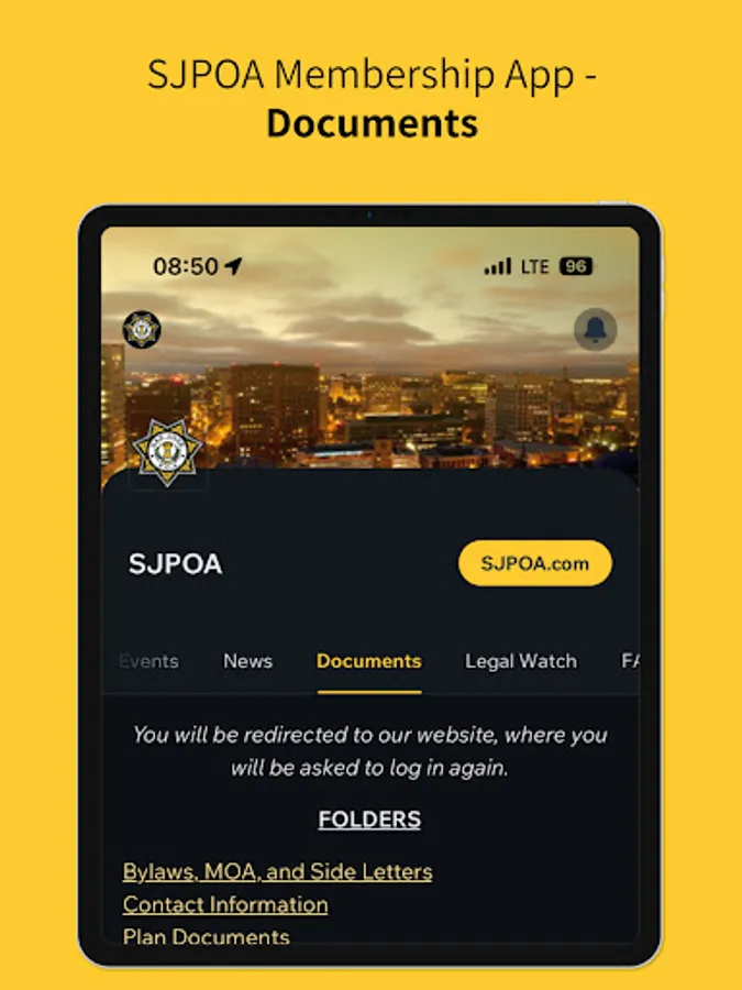 This app was developed for the membership of SJPOA to allow access to their forum, documents, events, announcements, etc.