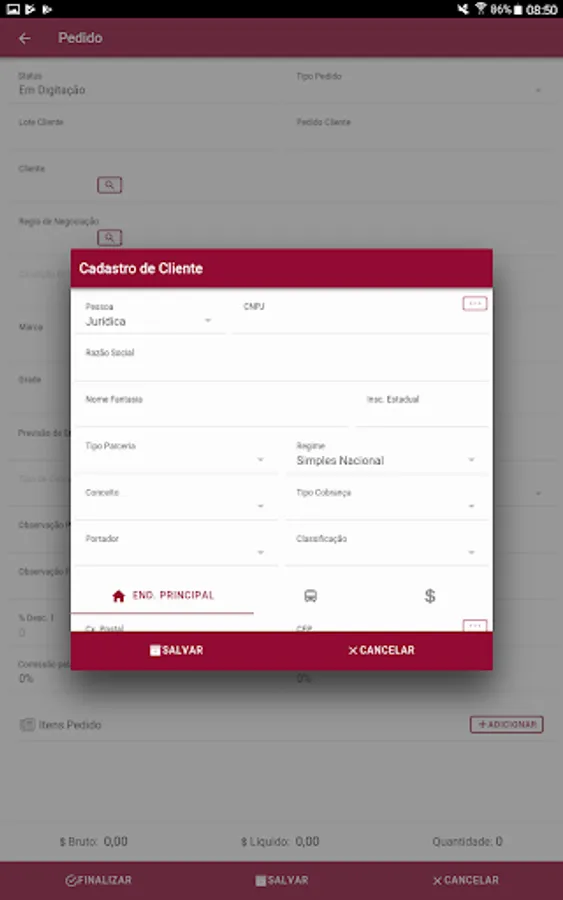 With the Catalog you can register customers and create sales orders that can be exported to your legacy system through integration.
