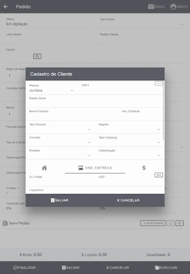 With the Catalog, it is possible to register customers and create sales orders that can be exported to your legacy system through integration.