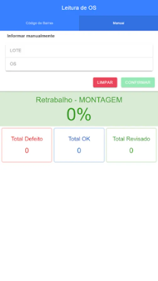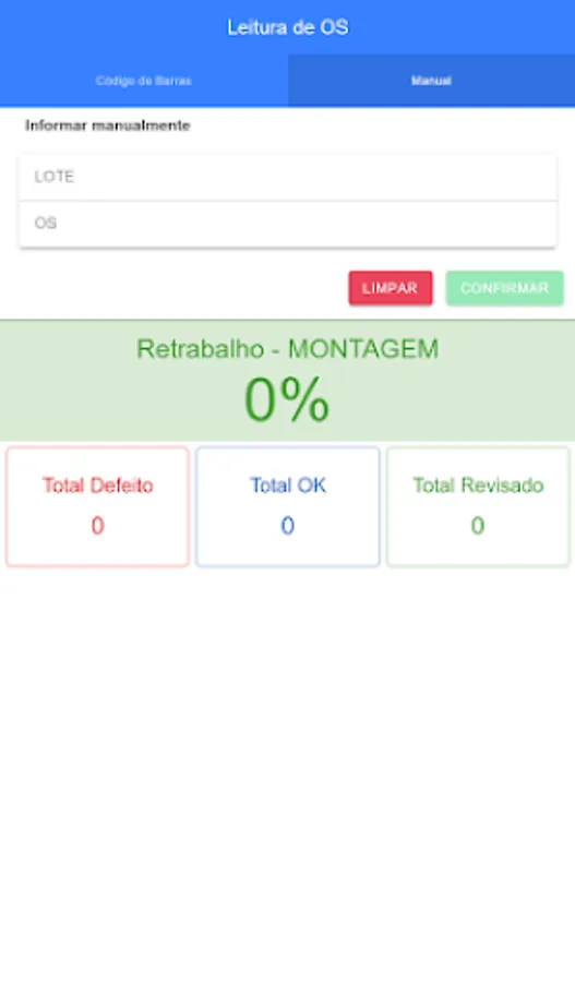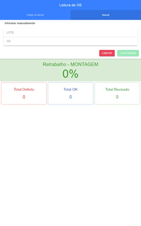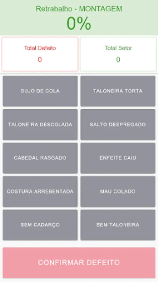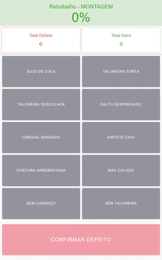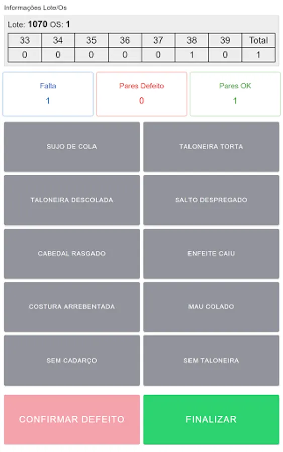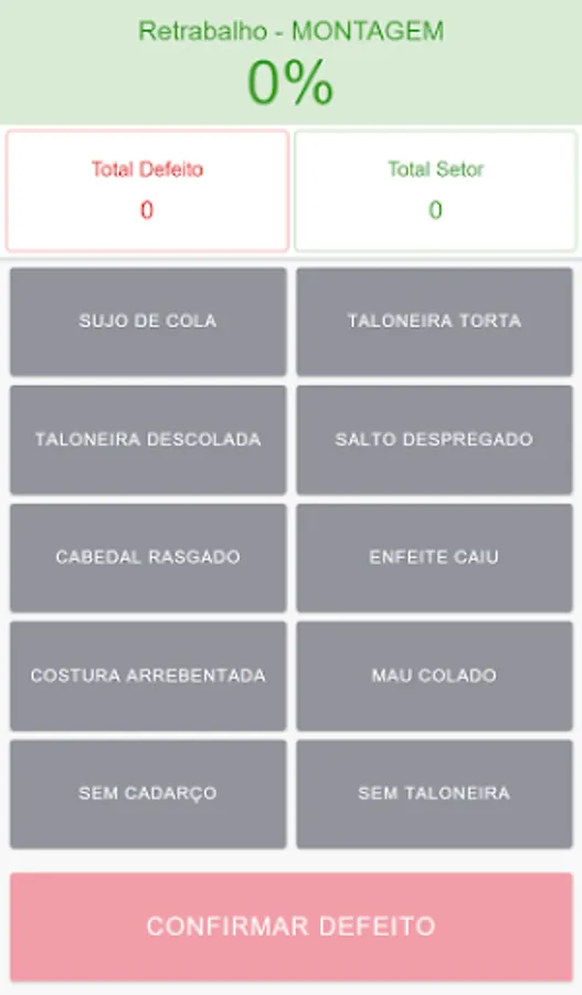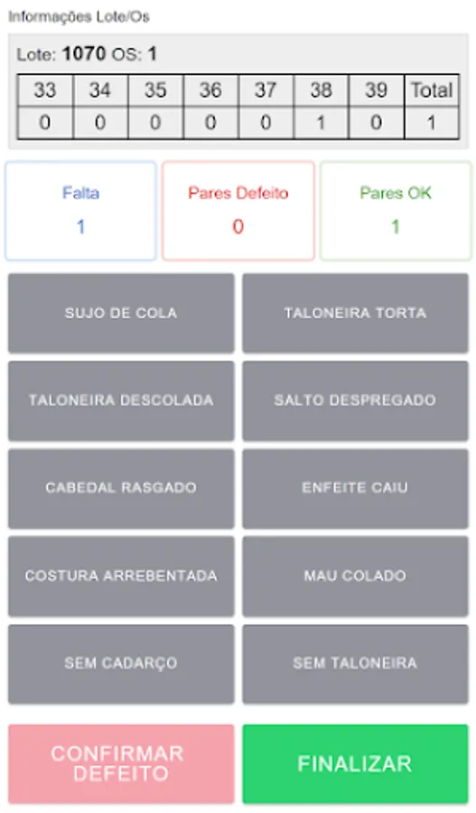 Application for quality control, enabling the user to inform the different types of defects found in the production process.