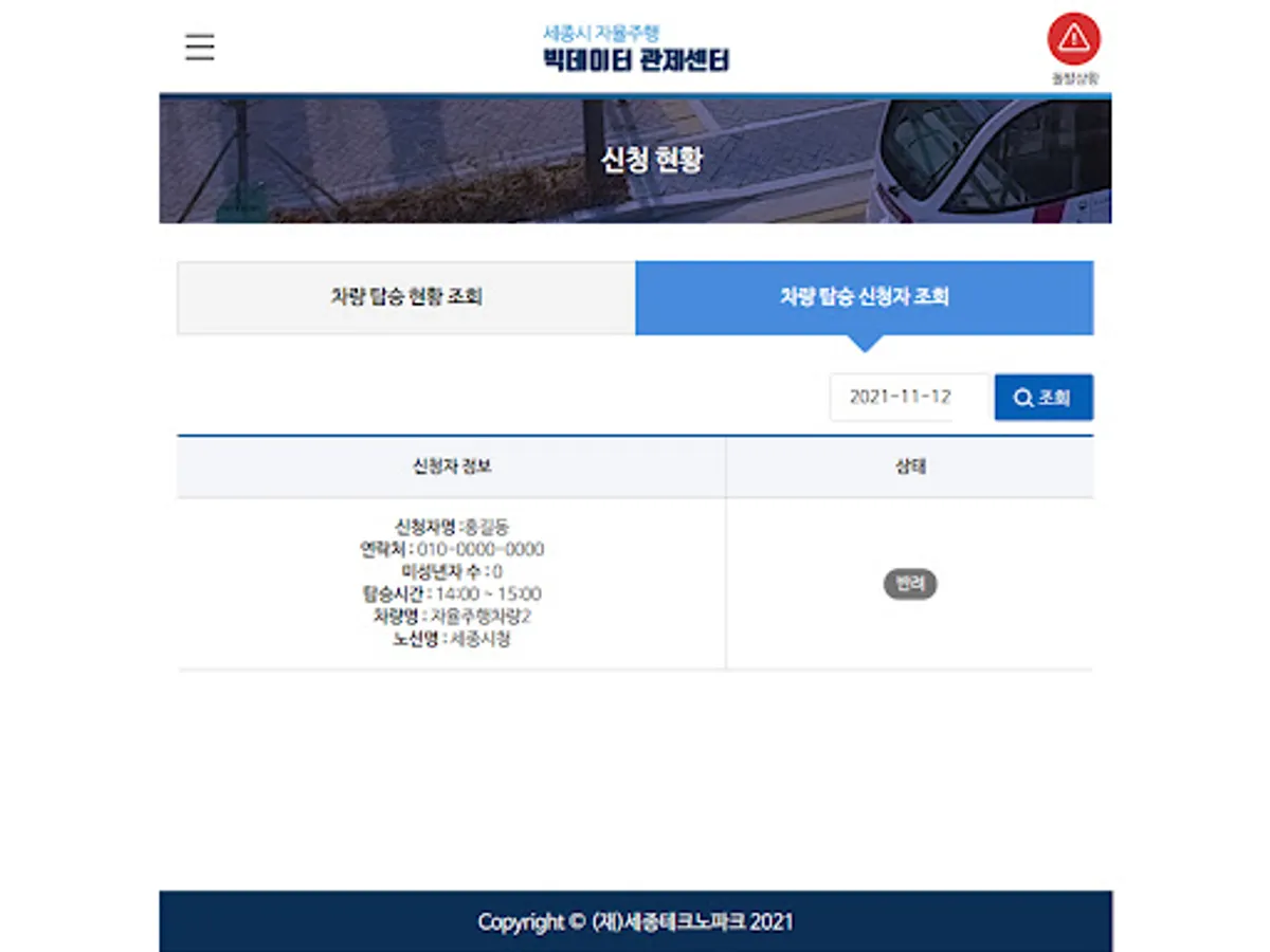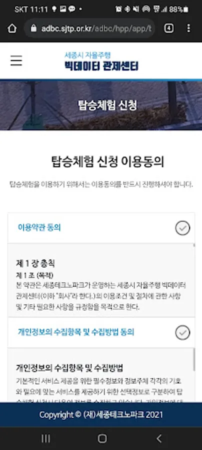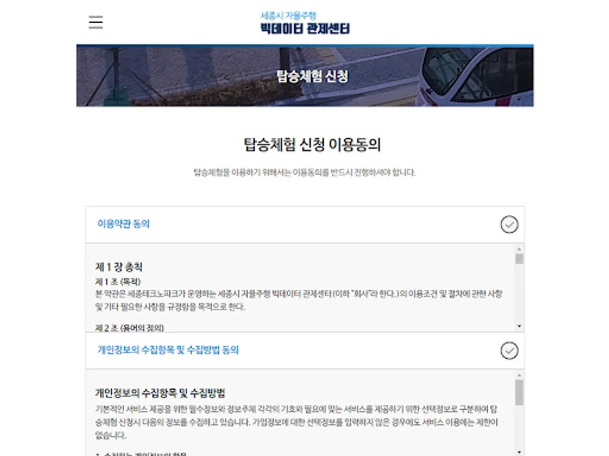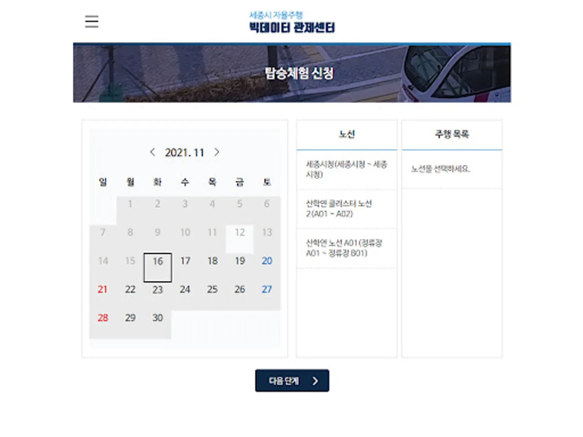 You can apply for a shuttle ride experience at the Sejong City Autonomous Driving Big Data Control Center through the mobile app.