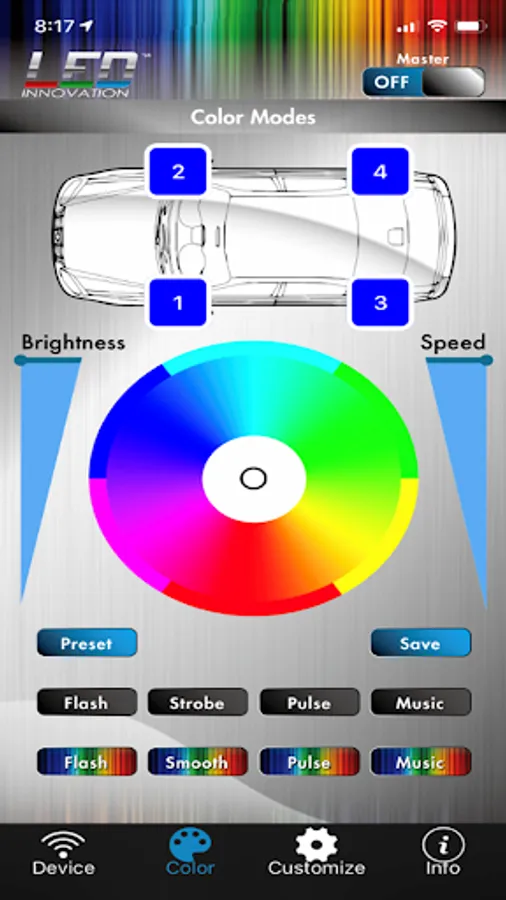 Use the LED Innov app to customize and control all of your LED INNOVATION™ Bluetooth® enabled lighting products. Innovative color wheel and 8 high energy animations. Requires Bluetooth 4.0 and up.