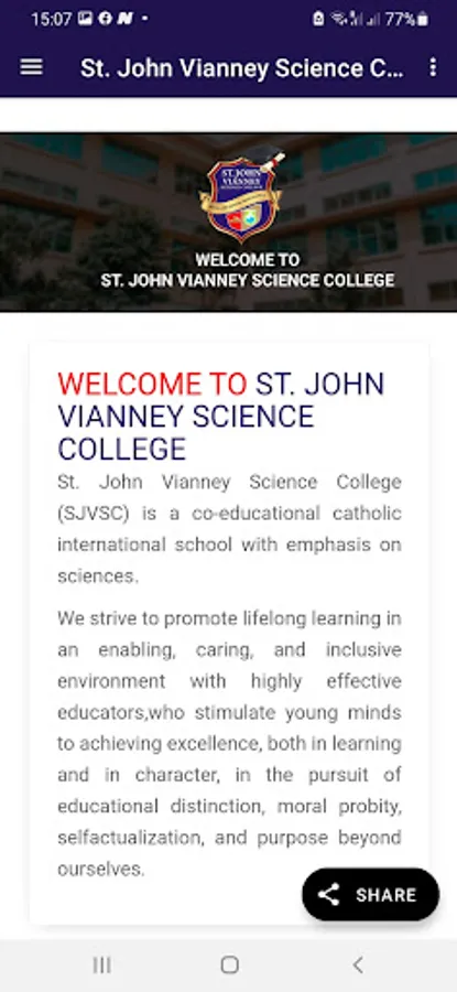 This Application has been created for the benefits of St. John Vianney Science College Staff, Parent & Student. to help them with school daily activities, from the School Director, Teachers, Administrative and Inventory Manager. And also to help improve the knowledge of the Staff, Parent and Student in an advance way, among others in the society.