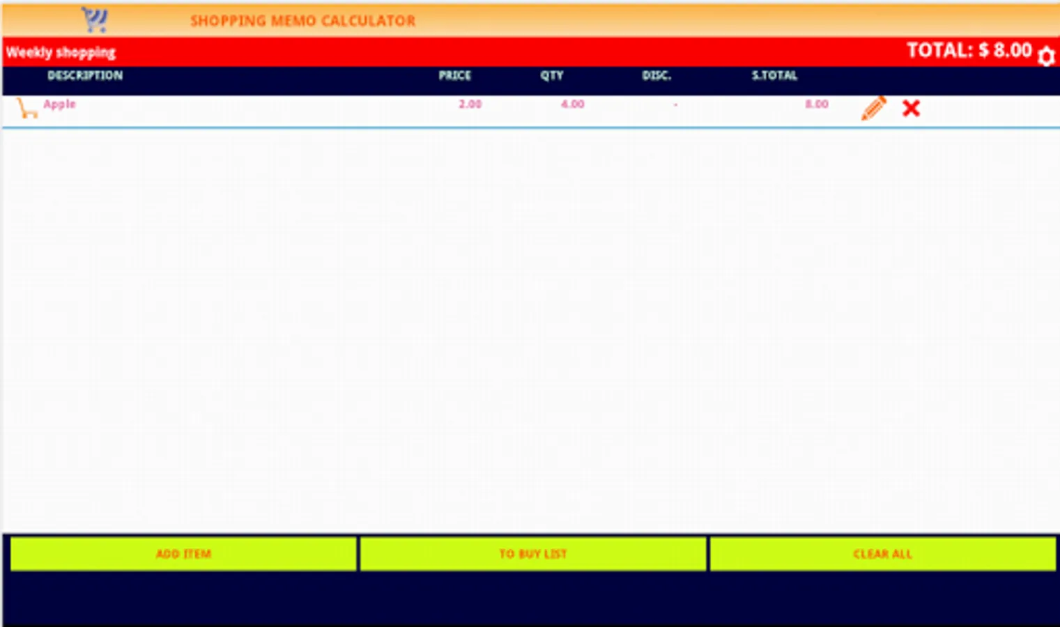 * To buy list is allow you to mark down necessary goods to be purchased before go to shopping center.
