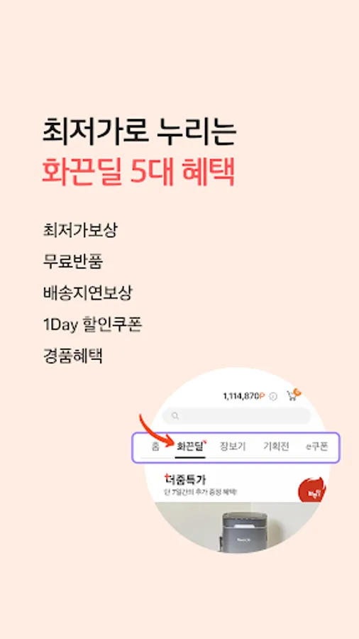 -Lowest price for specific products through “Hot Deal”, daily 1,000 won discount coupon, lowest price compensation free return, delivery delay compensation