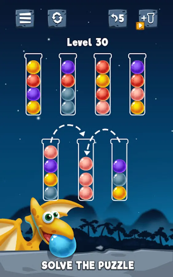 💧 Tap any bottle to move the egg lie on top in the bottle to another bottle.