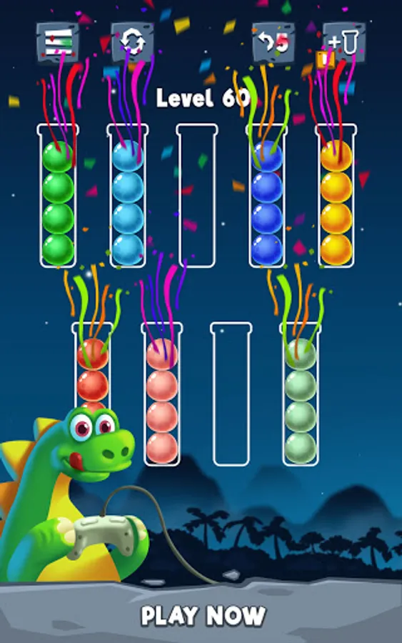 💧 The rule is that you can only move the egg if it is linked to the same color and there’re enough space on the bottle.