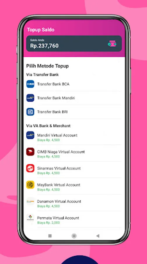- Topup Dana, Ovo, Gopay, Grab, I-Saku, LinkAja, ShopeePay, Maxim Driver, Cinema Tickets