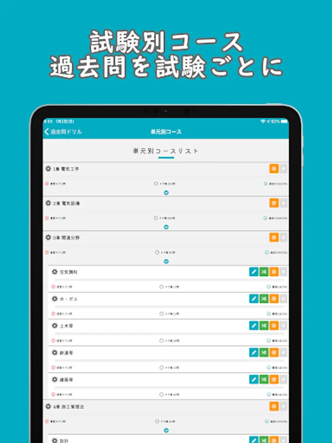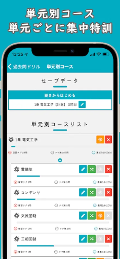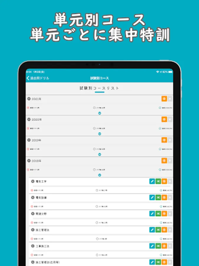 ・ "Unit-specific course" allows you to solve past problems by dividing them into units. You can definitely deepen your understanding by solving similar problems such as computational problems and legal problems.