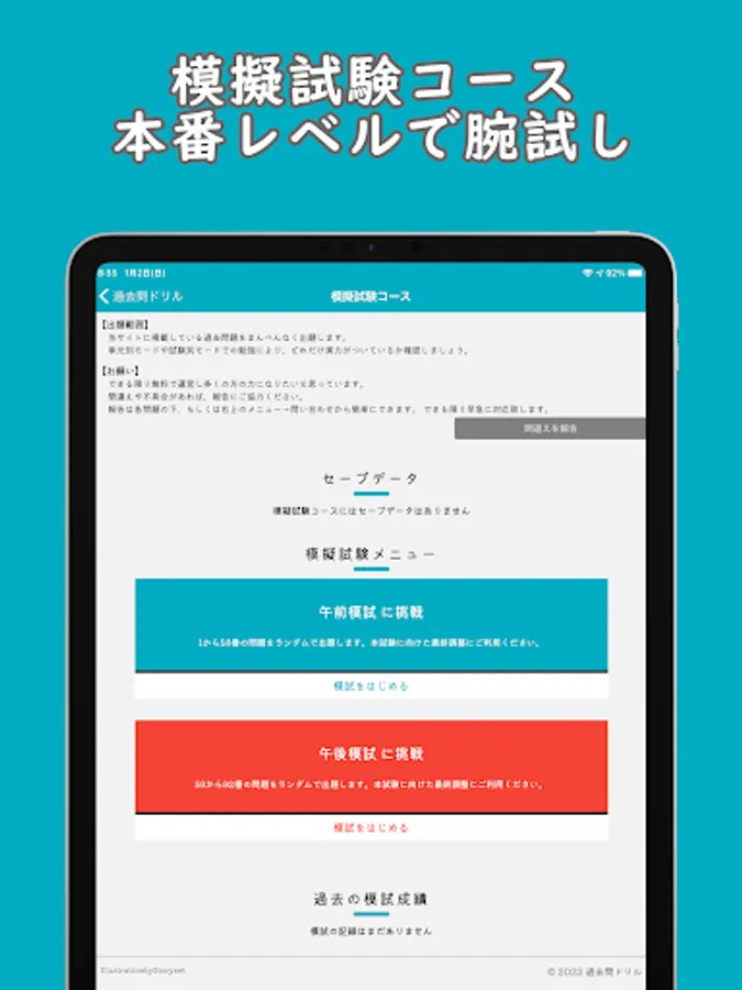 ・ "Exam-specific course" is a course to practice past questions by exam. You can solve the questions given in each exam.