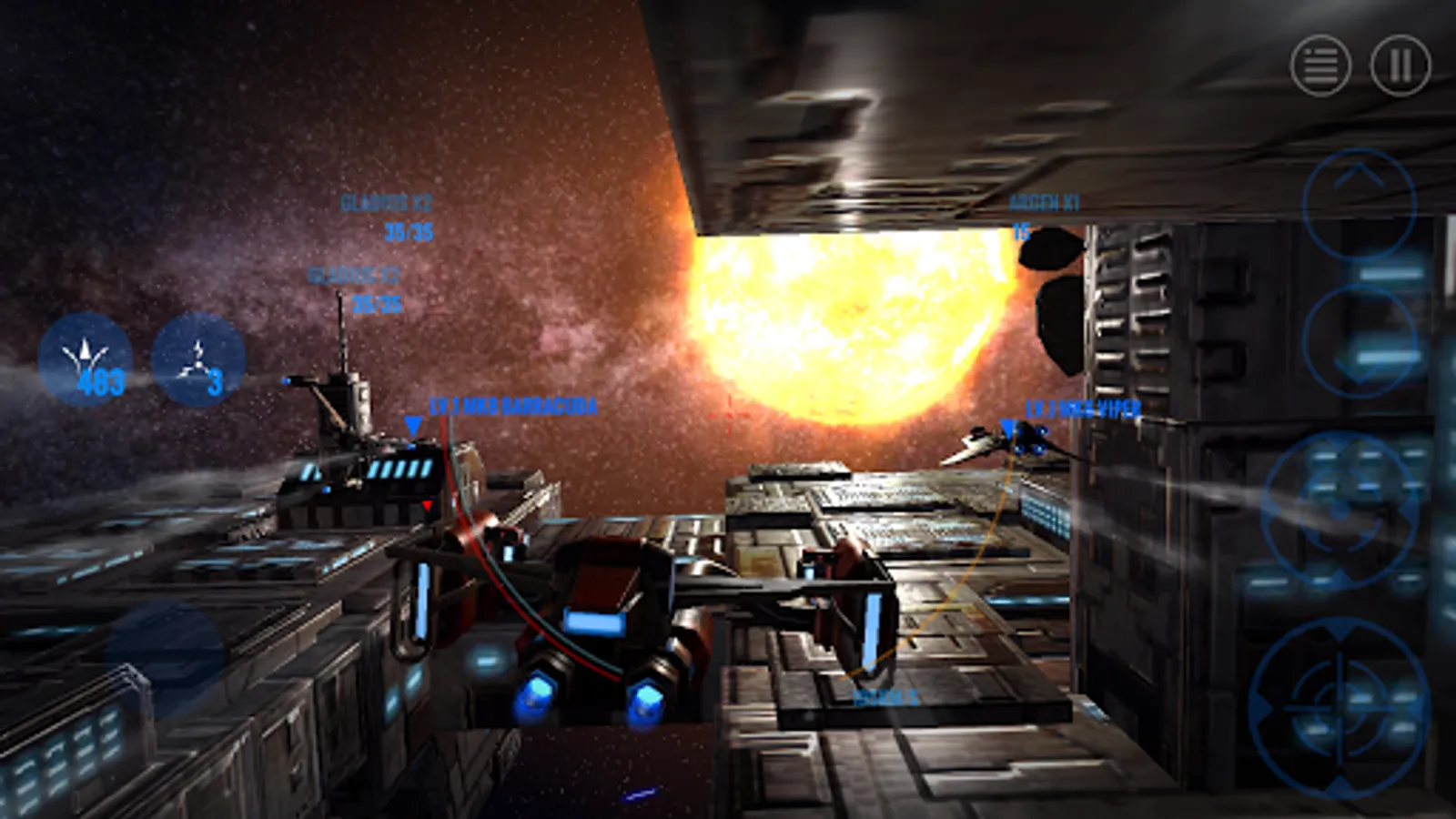 You can control your ship directly, or watch the battle using Auto pilot AI.