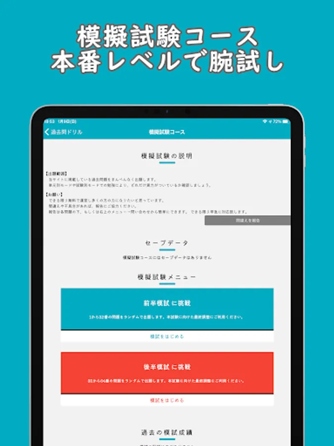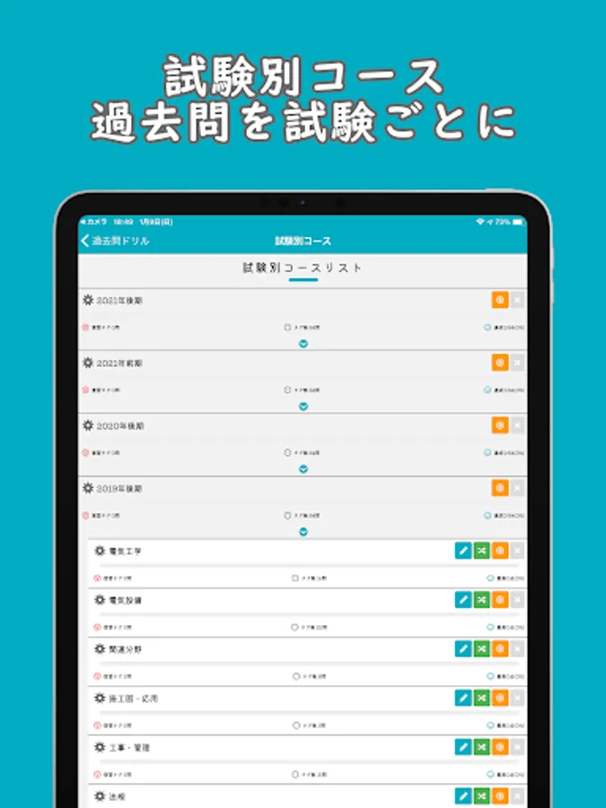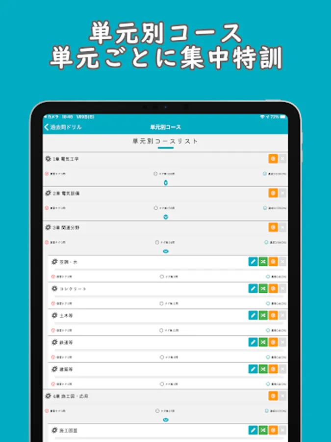 ・ "Unit-specific course" allows you to solve past problems by dividing them into units. You can definitely deepen your understanding by solving similar problems such as computational problems and legal problems.