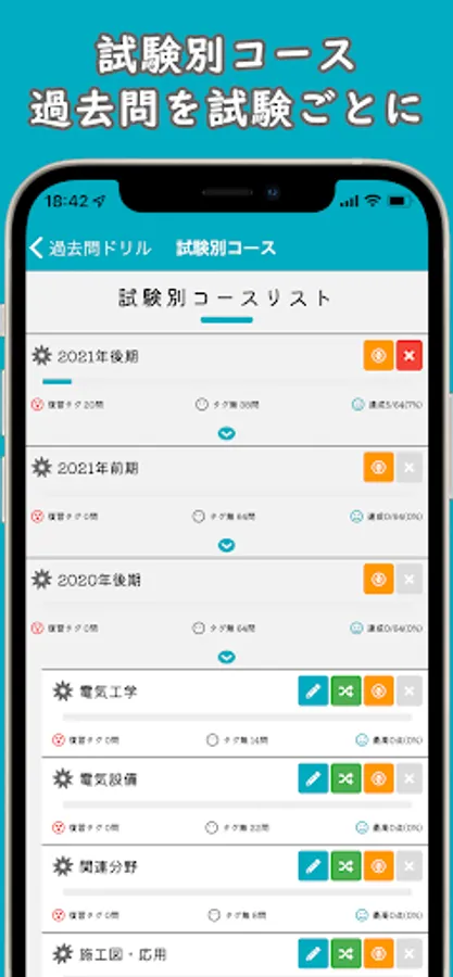 ・ "Exam-specific course" is a course to practice past questions by exam. You can solve the questions given in each exam.