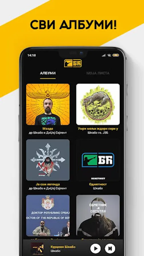 - Slušaj onlajn ili preuzmi sebi u telefon bilo koju od Škabovih pesama, od 2004. godine do smaka sveta.