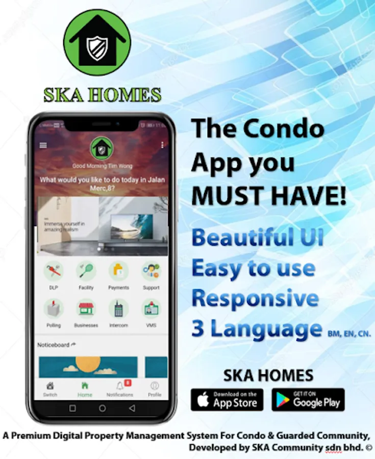 SKA HOMES is Malaysia's Top Community App for property management, built by SKA Integrated Solutions Sdn Bhd, a Malaysian startup company, focusing on providing Professional Digital Management Solutions.
