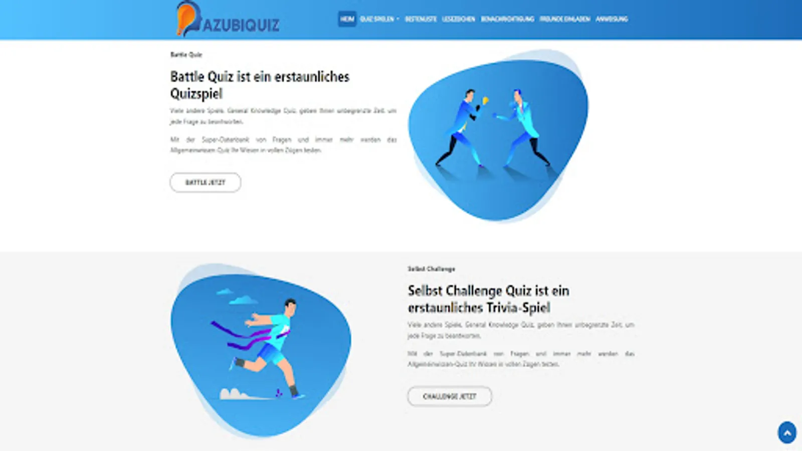 Azubiquiz das erste Lernspiel für Auszubildende. Du bereitest dich während der gesamten Ausbildungszeit auf deine Klausuren, Deine Abteilungen und die Zwischen- und Abschlussprüfung vor - zeit- und ortsunabhängig. Ein sofortige Stärken und Schwächenanalyse zeigt Dir gezielt, welche Bereiche du verbessern solltest. Sofortiges Feedback mit kurzen Infotexten bringt den Spaß zum Lernen.