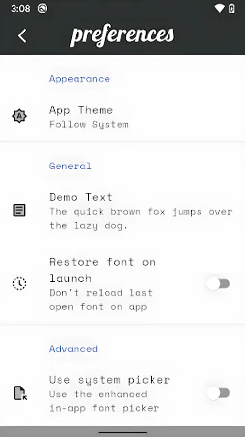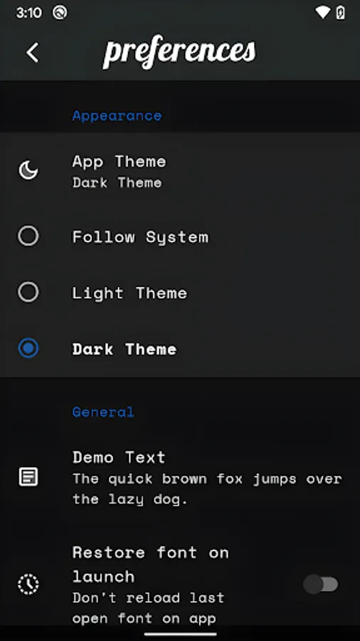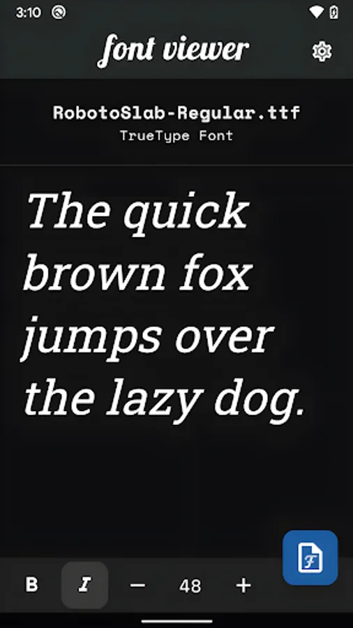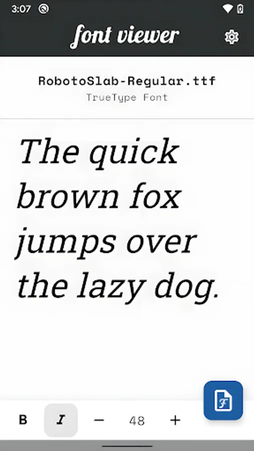 Font Viewer is a powerful app for previewing TrueType (.ttf) and OpenType (.otf) files in an editable text field. It features:
