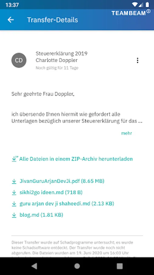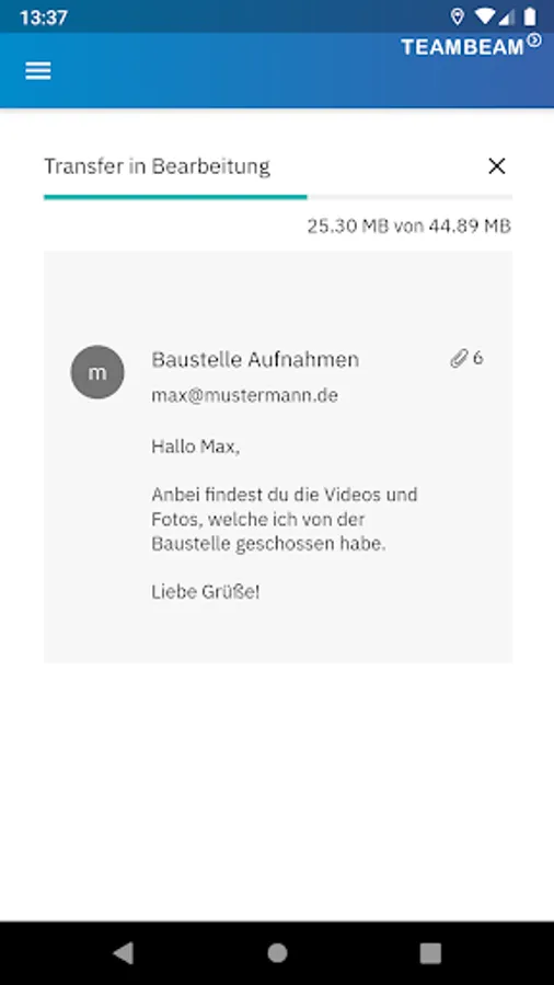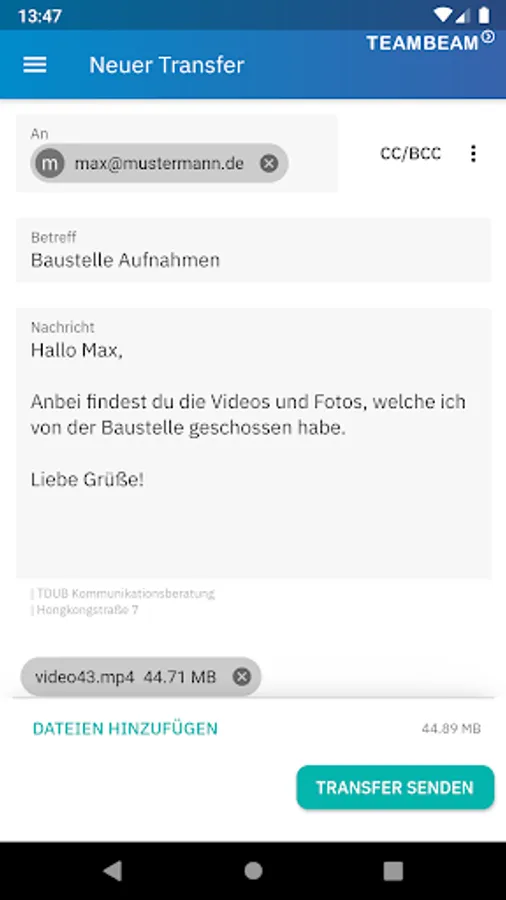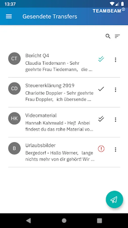 Send and receive big files and access your saved transfers from the TeamBeam Drive - securely, encrypted and in line with the German Federal Data Protection Act, the strictest data privacy regulation worldwide with the highest level of protection.