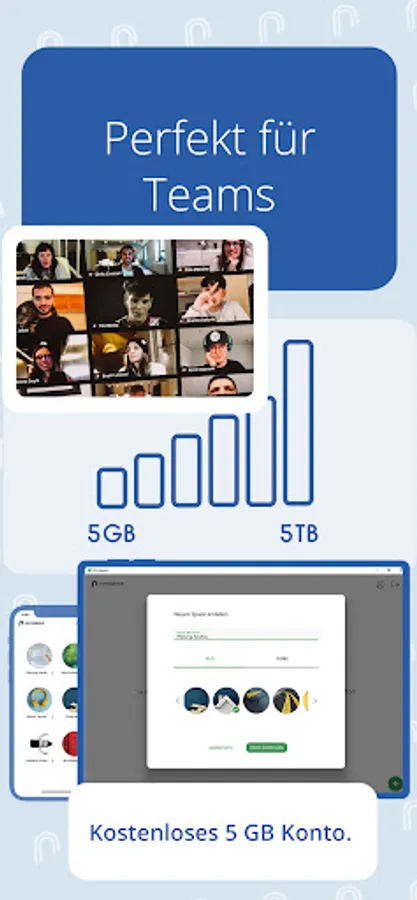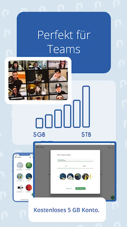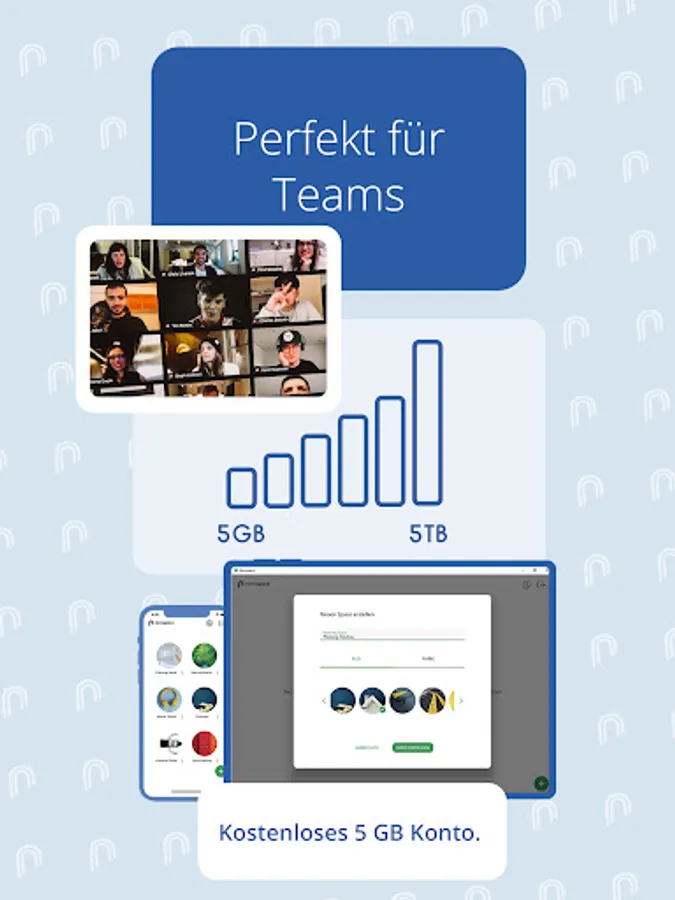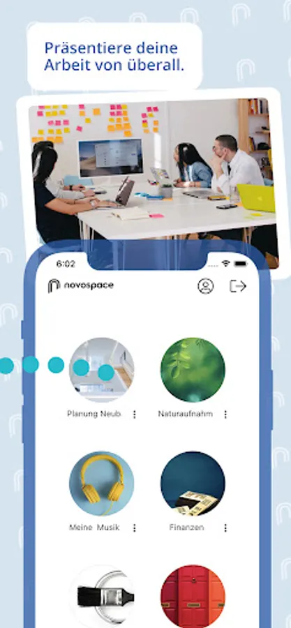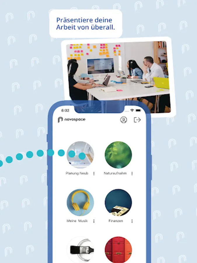 Novospace is your cloud storage with a unique personal ambience. Set up beautiful Spaces for your projects and assign individual title pictures and enjoy a perfect personal overview of your current projects. And the best: 5 GB are free.
