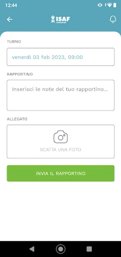 This section is dedicated to managing reports: just select a work shift and enter the details of the activities performed and their duration. The report will be automatically forwarded to the company management system.
