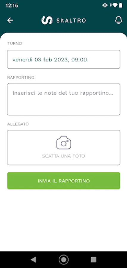 This section is dedicated to managing reports: just select a work shift and enter the details of the activities performed and their duration. The report will be automatically forwarded to the company management system.