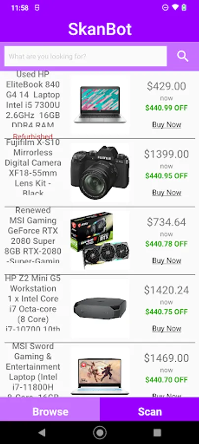 Search of scan product barcodes to find the best deal on thousands of products. By shopping with SkanBot, you can find the best deal and earn cash rebates. Transfer your rebates directly to your Venmo or PayPal.