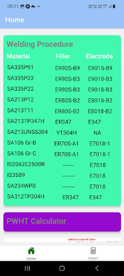 This app provides mechanical welding guide according to documents like ASME SECTION – II, ASME SECTION – V, ASME SECTION -VIII, ASME SECTION -IX and AWS.