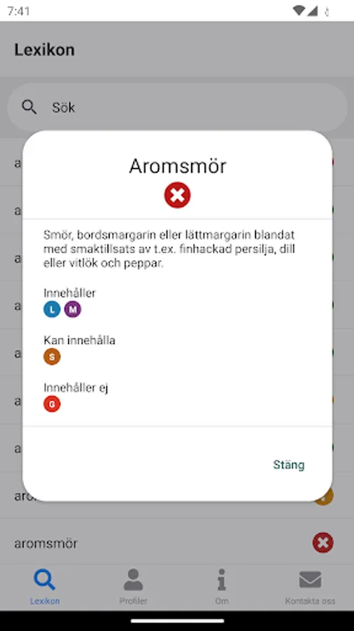 The app is completely based on the book Ingredient Dictionary published by the Coeliac Society and Gothia training. The app uses the model as the official source and includes all foods in 1098 from the 2012 edition. Just like in the book can be done by the app's extensive list quickly and easily look up the ingredients, additives and definitions relating to food and food products. Smart functionality has been added: a search function will help you find what you were looking for, or filter the list according to your personal profile. Each headword is explained and possible function. You also get information about the ingredient and if it contains gluten, lactose, dairy or soy protein.