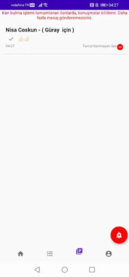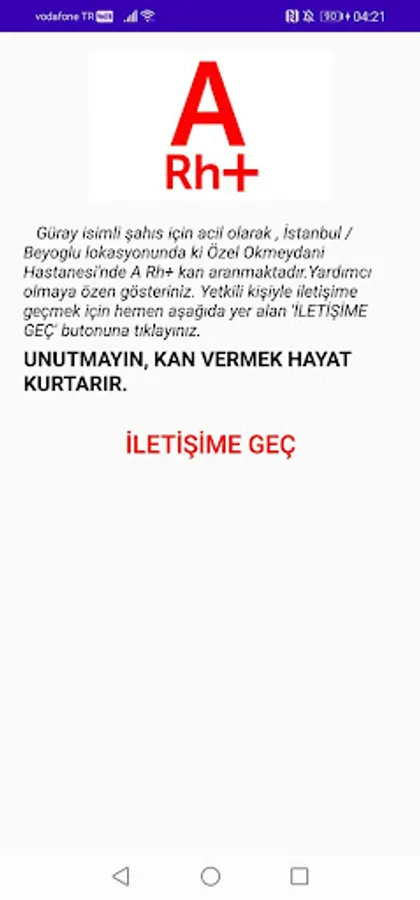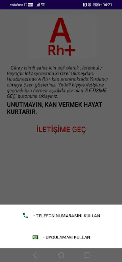 The application includes a messaging section. It is also considered for users who want to donate blood but do not want to share their phone number. Since the purpose of the application is not "Chat", if the blood requirement is met, the messaging function will be disabled. If something is requested from you in exchange for your blood need or you encounter discourses that make you uncomfortable, you can complain immediately. We are strongly against such criminal incidents and we are working diligently on them.