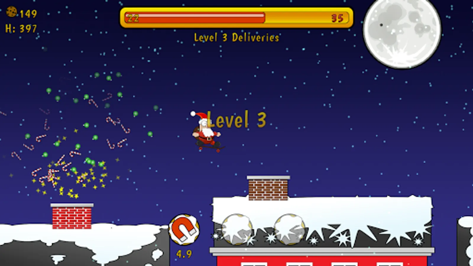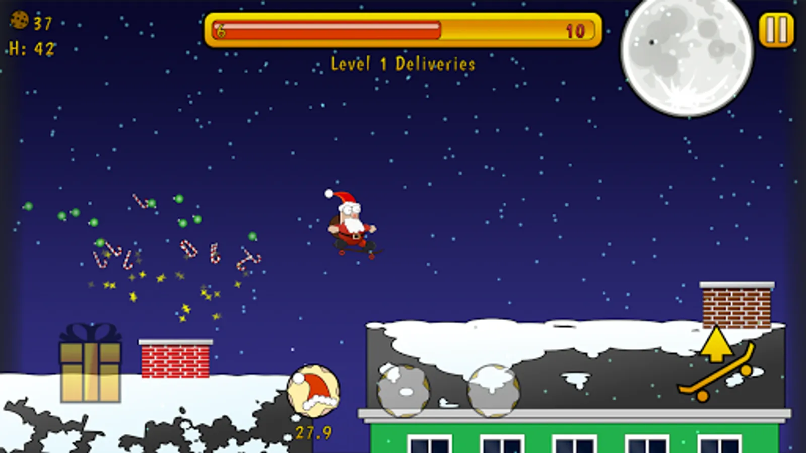 Oh no! Santa's sleigh is busted! Good thing he's got a skateboard!