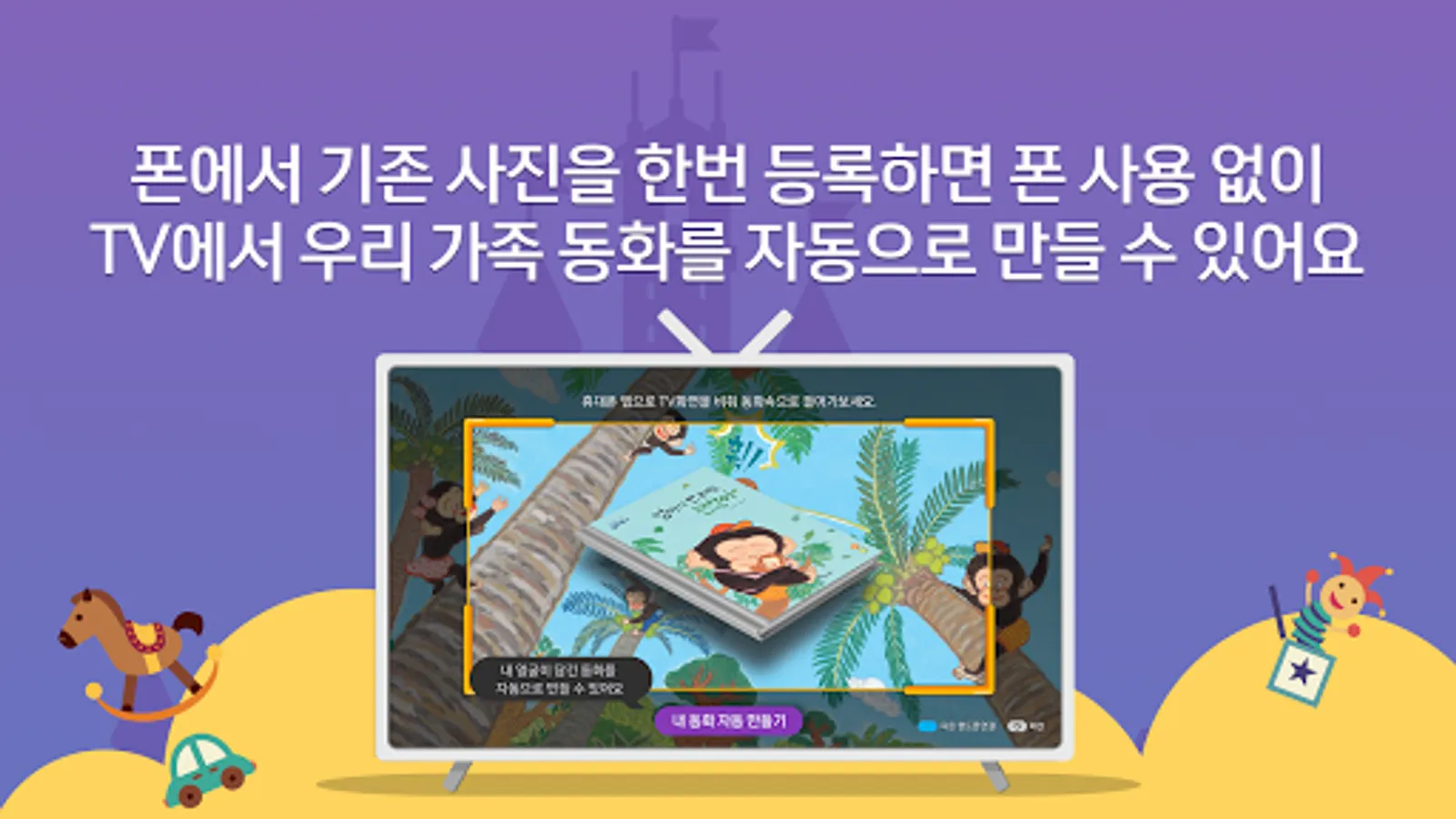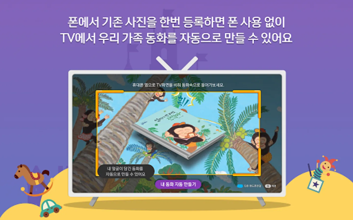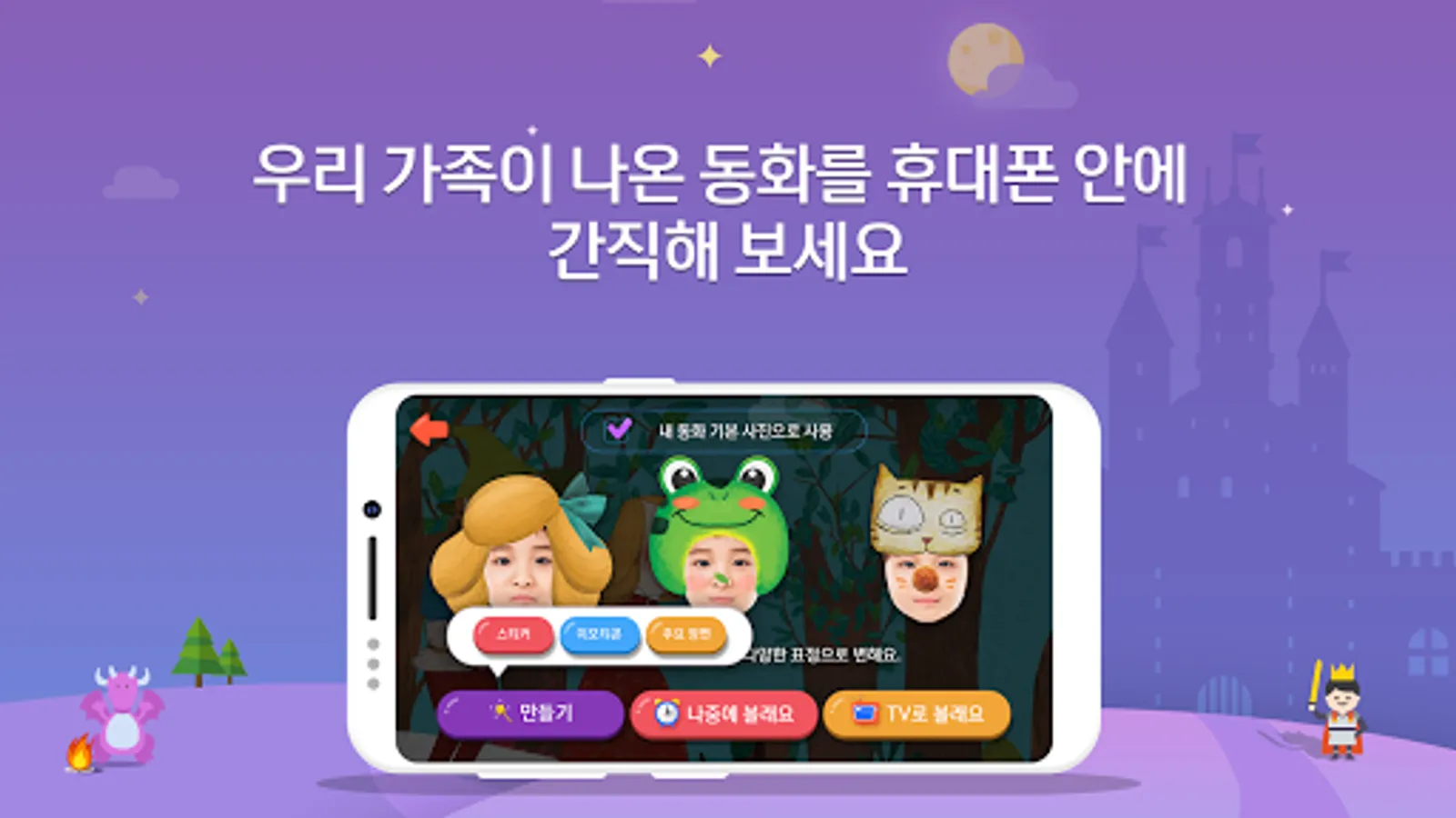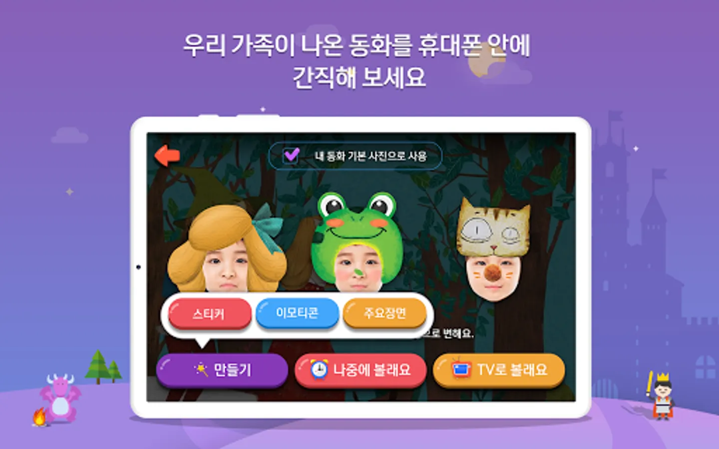 ④ If you take a picture of your face according to the fairy tale, color the picture, and record your voice and send it to the TV, you can watch our family's fairy tale on TV.
