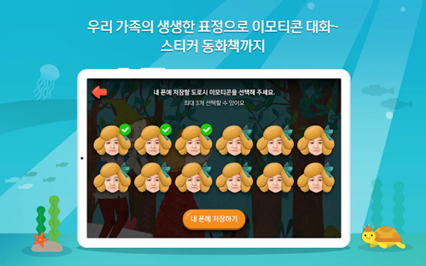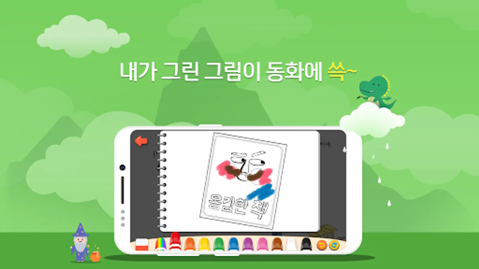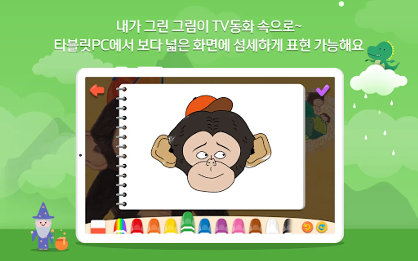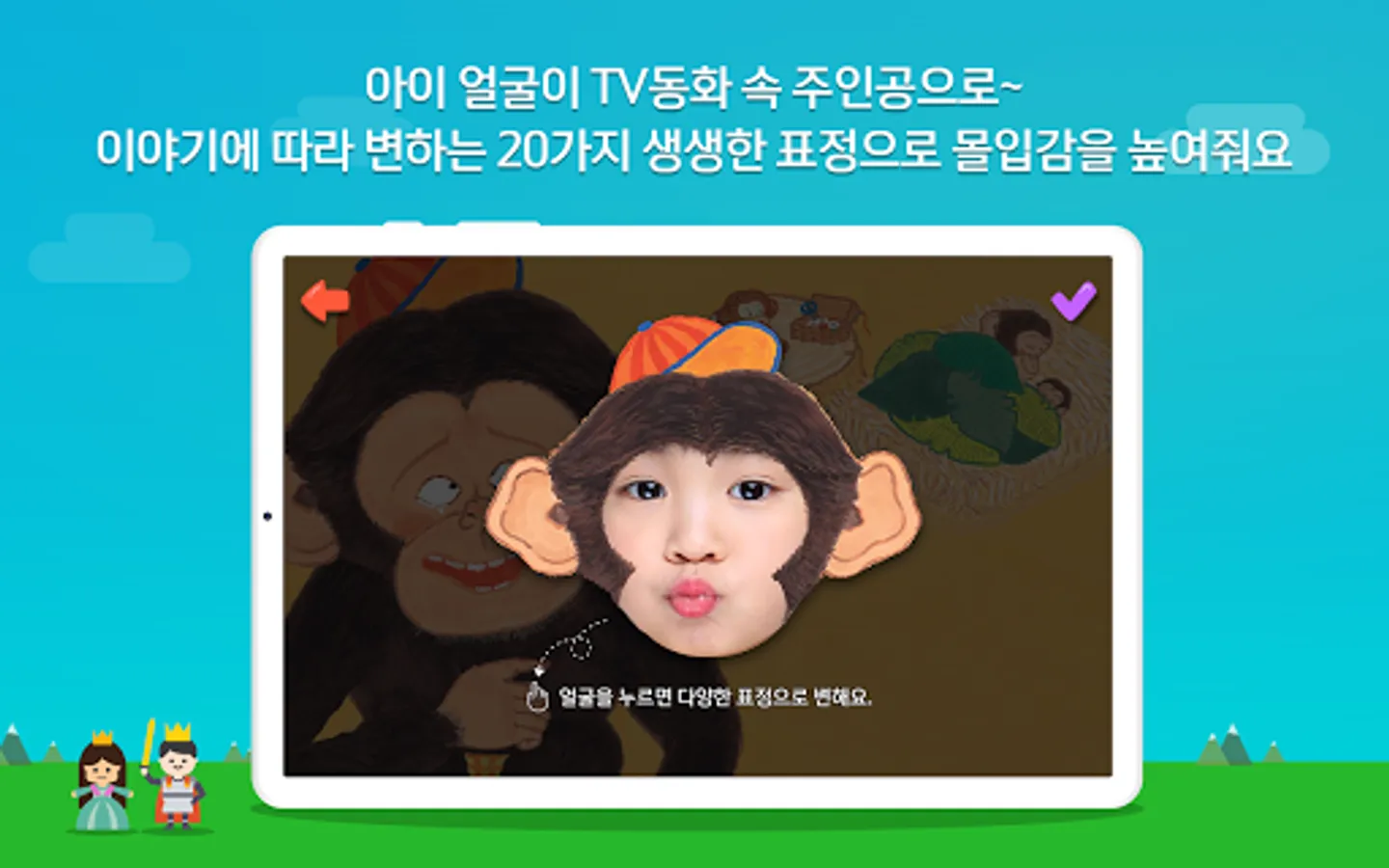 ④ If you take a picture of your face according to the fairy tale, color the picture, and record your voice and send it to the TV, you can watch our family's fairy tale on TV.