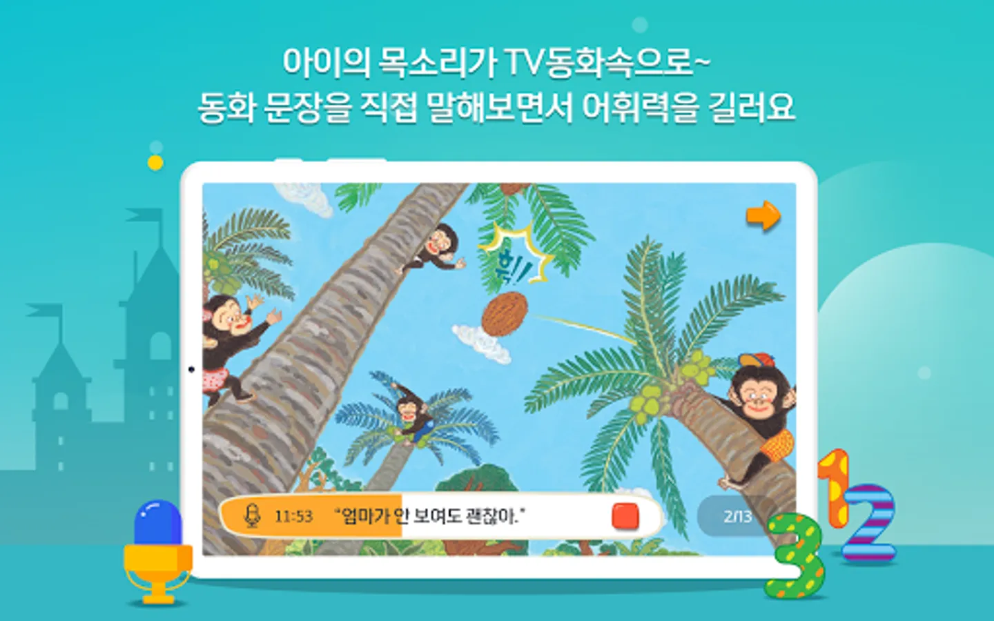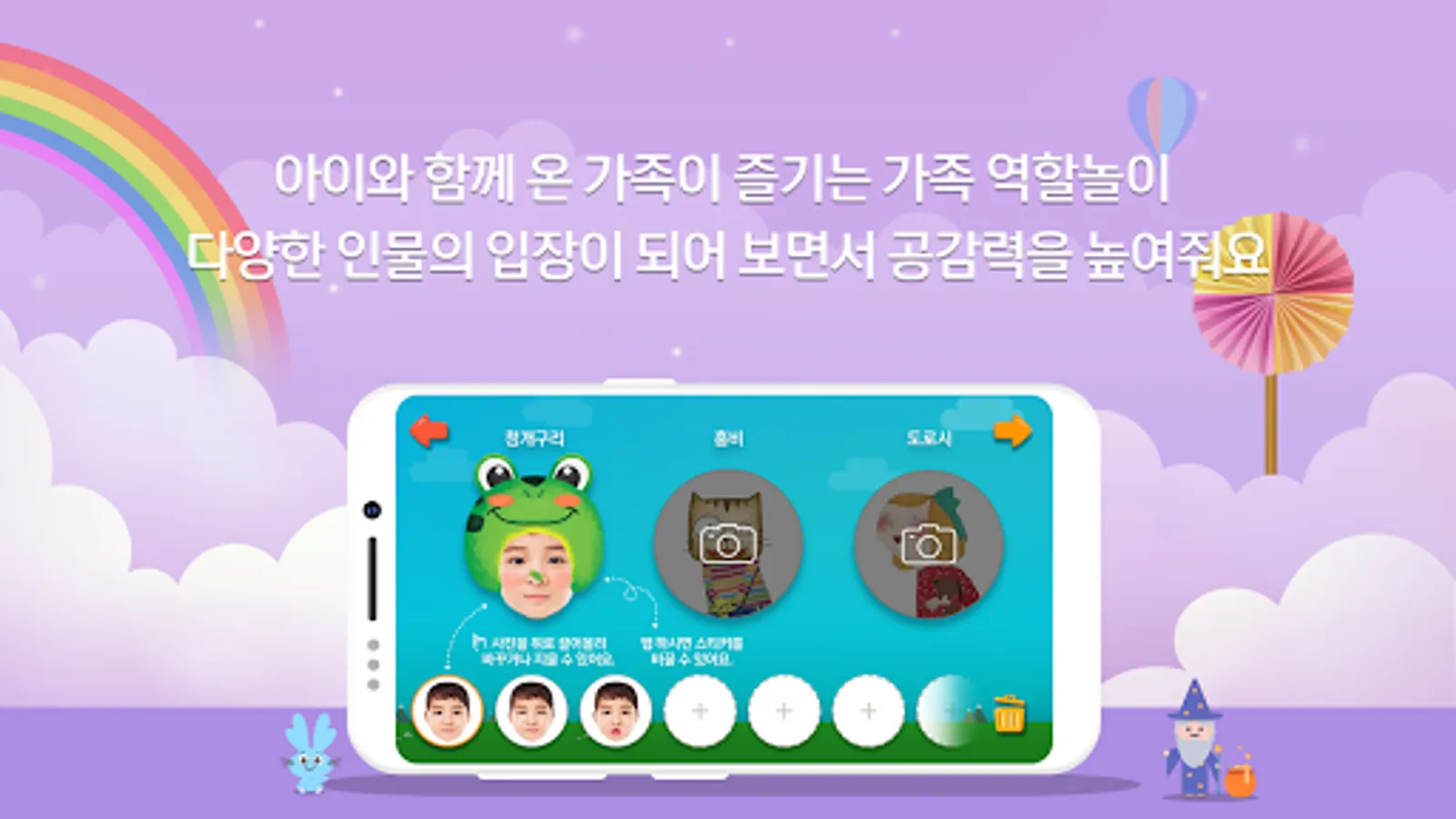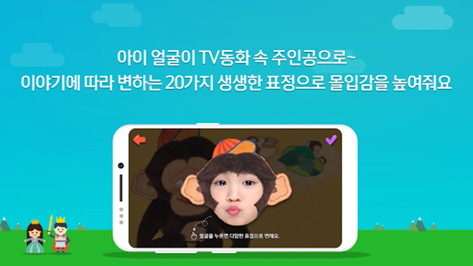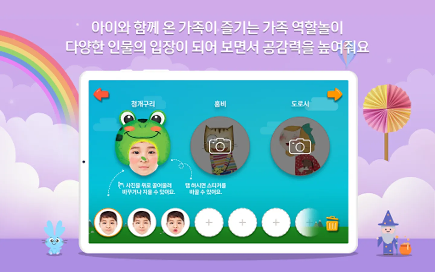 ④ If you take a picture of your face according to the fairy tale, color the picture, and record your voice and send it to the TV, you can watch our family's fairy tale on TV.