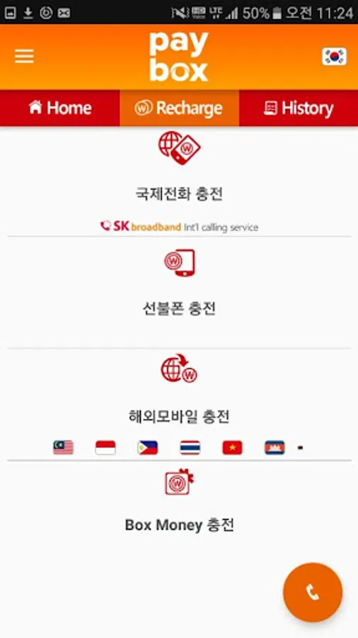 Use paybox to directly charge SKB international calls, domestic prepaid phones & overseas phones, and use it conveniently.
