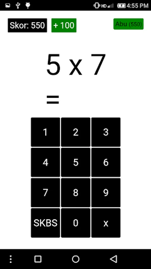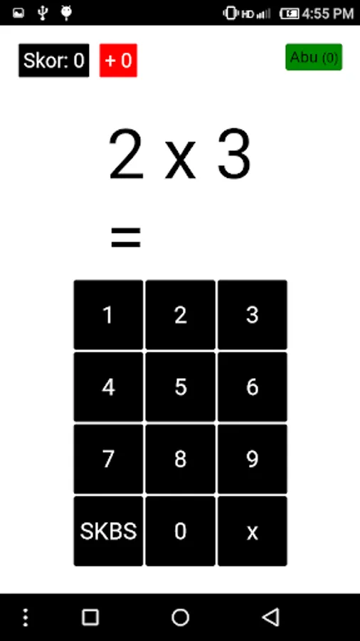 Kekunci X ditekan untuk clear kan jawapan yang tersalah tekan. Pengiraan skor dilakukan selepas 1 saat kekunci tidak aktif setelah jawapan terakhir dimasukkan.