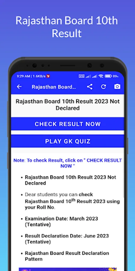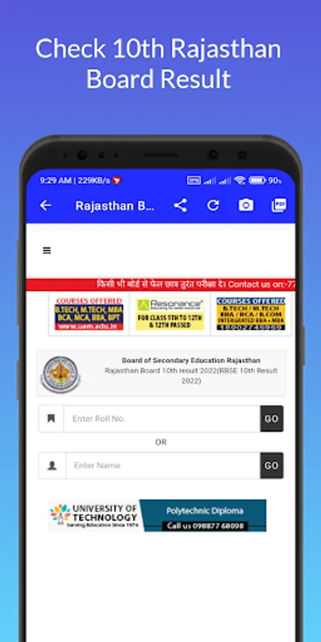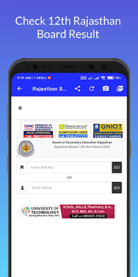 The fastest way to check your Board Result. best app for Rajasthan board result. it work fast get Up To Date Every Time it is good for student who see your result.
